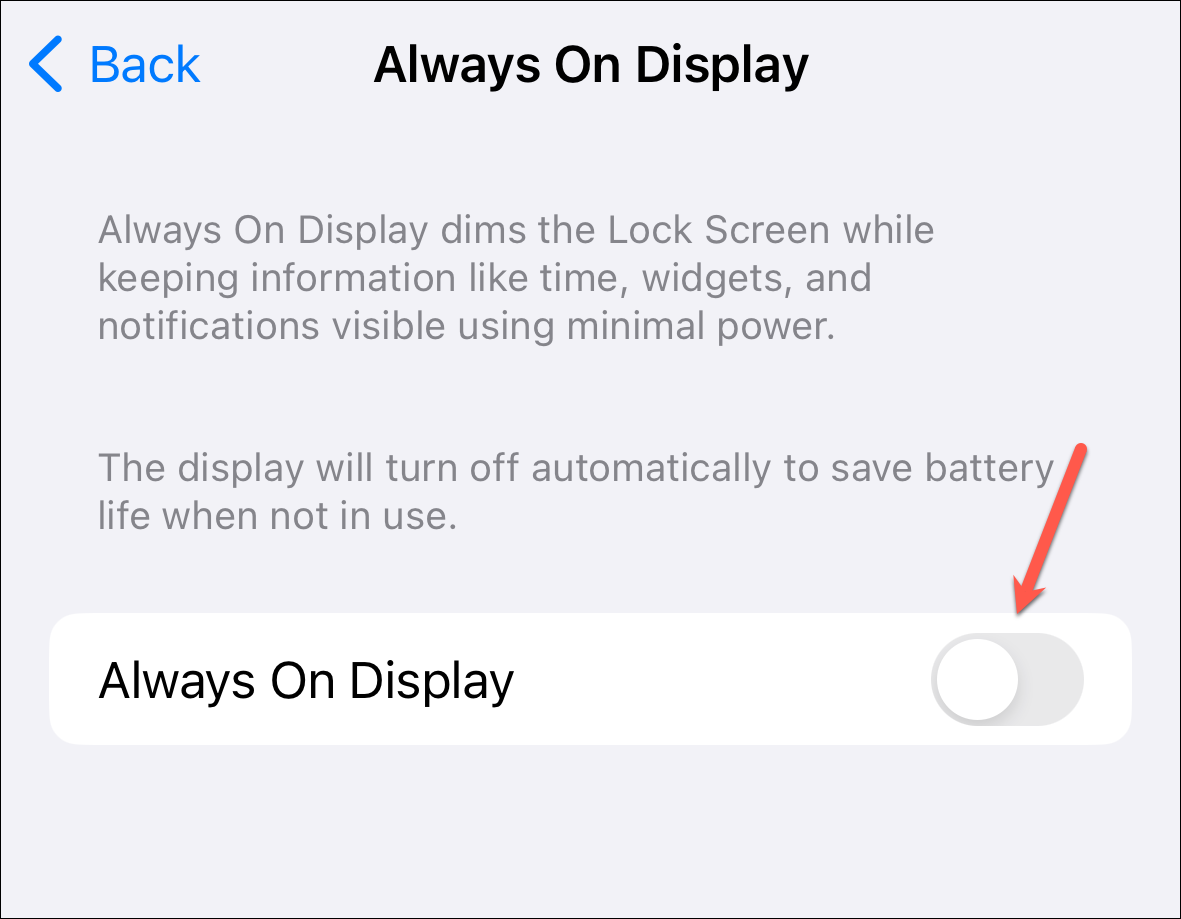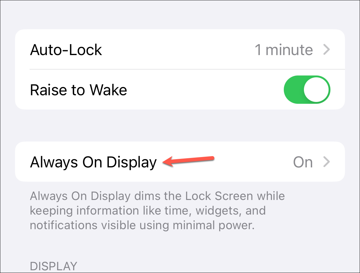 - Tap the option for 'Always On Display' from the Display & Brightness settings.