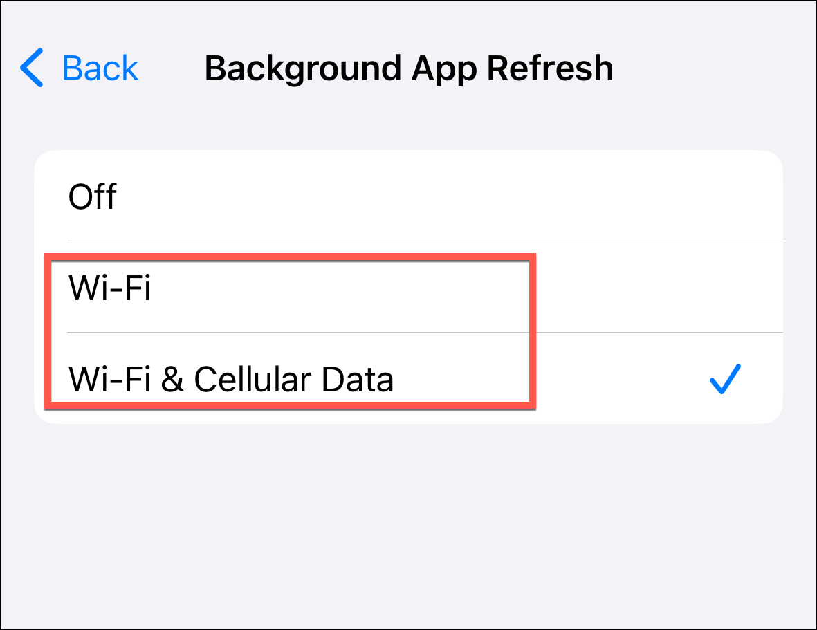 - You can also configure whether you want Background App Refresh to be available only on Wi-Fi or on both Wi-Fi and cellular data. Tap the 'Background App Refresh' option at the top.