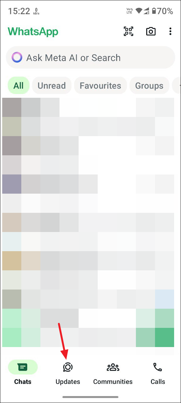 - Open WhatsApp and tap on 'Updates' at the bottom.
