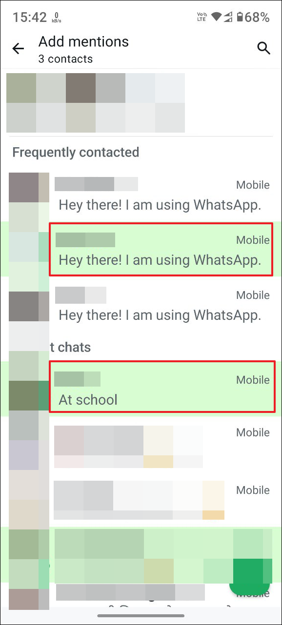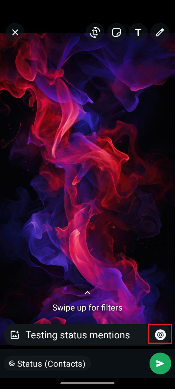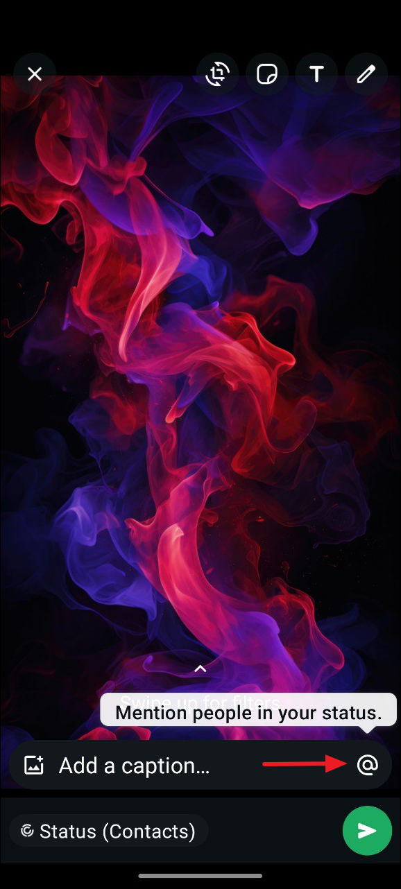 - Once you select the contacts you want to mention in your status, the '@' symbol will turn white. You can tap on it again to add more people.