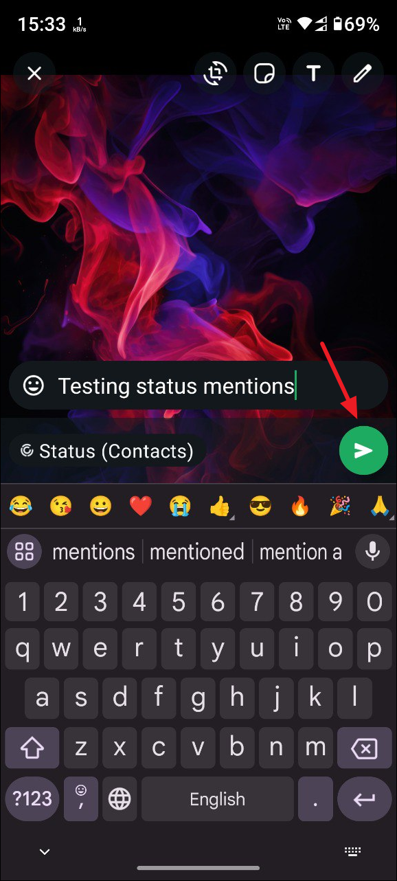 - After selecting the contacts you want to mention, type your status message and tap on the arrow button to update your status.