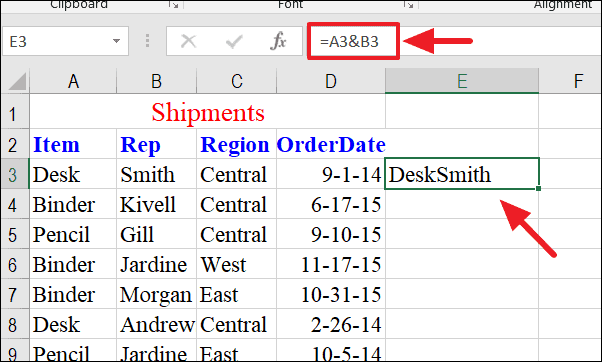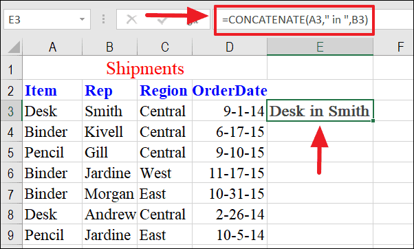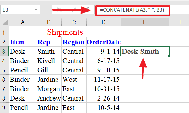 =CONCAT(A3,B3)Step 3: To include a space or separator, adjust the formula: