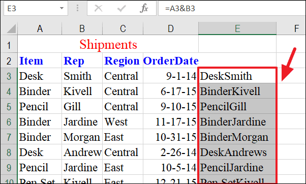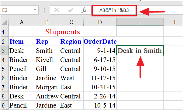Step 3: To add a space or any separator between the merged data, modify the formula. For adding a space: