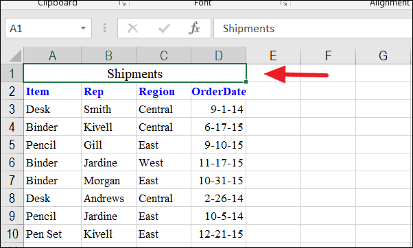 Step 1: Highlight the cells you want to merge. This could be across columns to create a centered title.