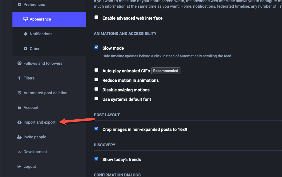 Go to your new server and log in to your new account. Then, open ‘Preferences’ and click the ‘Import and Export’ option from the navigation menu on the left.