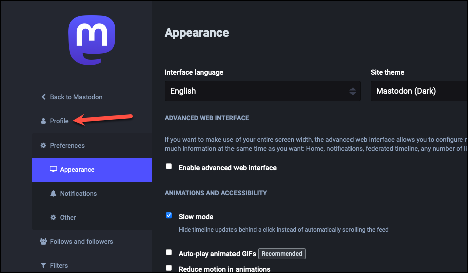Log in with your new account on the new server. Then, go to ‘Preferences’ from the menu on the right. Then, go to ‘Profile’ from the menu on the left.