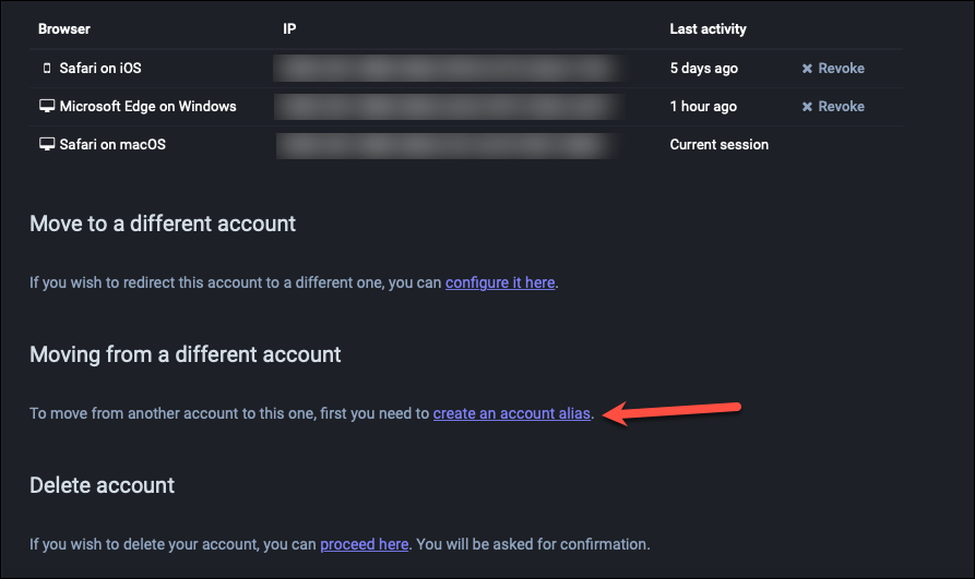 Now, creating an alias is a necessary step in initiating the account move, but it does not do anything on its own. It’s a completely harmless and reversible move. The most important step in account migration is the next step where you redirect your old account to your new account.