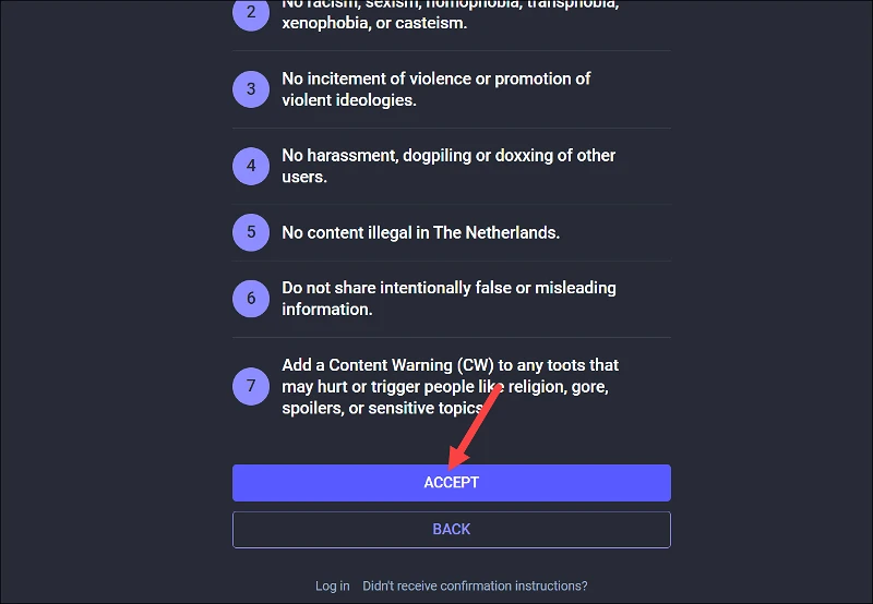 Rules for the server will appear. Read them and click the ‘Accept’ button to proceed.