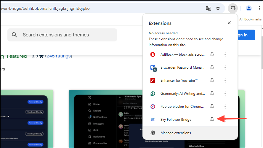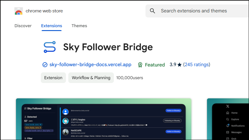 - The Sky Follower Bridge extension has a few issues, so at times you may experience problems when using it. For instance, if you exceed the Bluesky API rate limits, you will have to wait for some time before using the extension again.