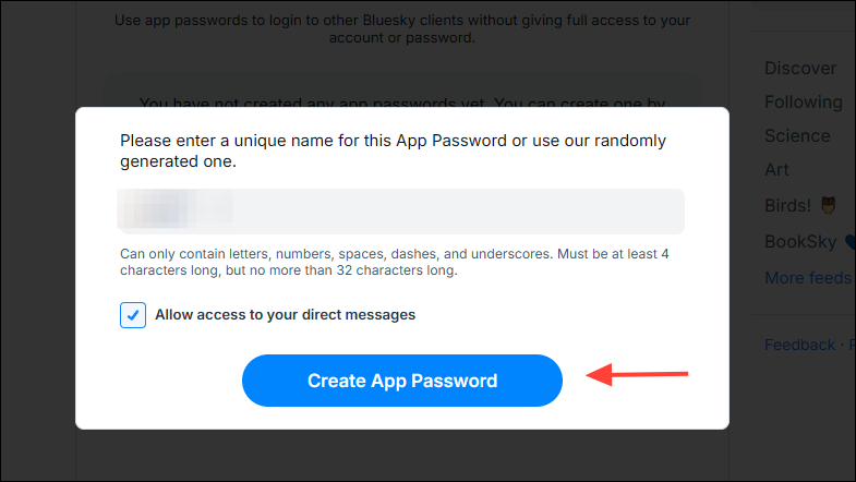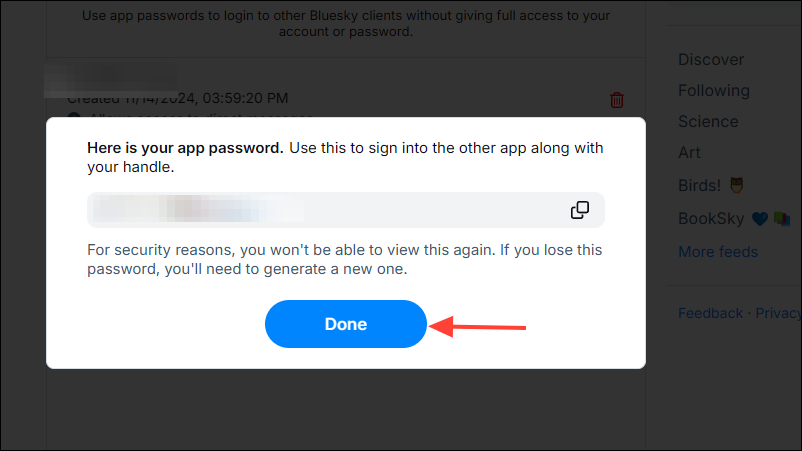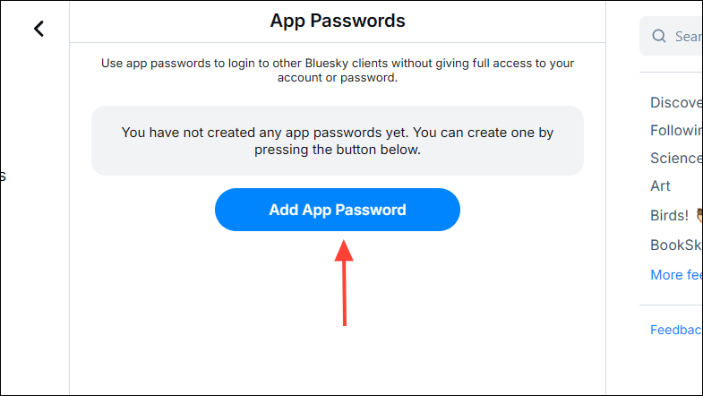 - If you misplace your Bluesky App password, there is no way to recover it. You will have to set up a new App password.