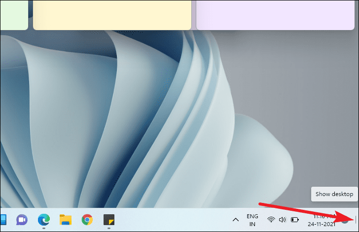 - Click on the area labeled 'Show desktop'.
