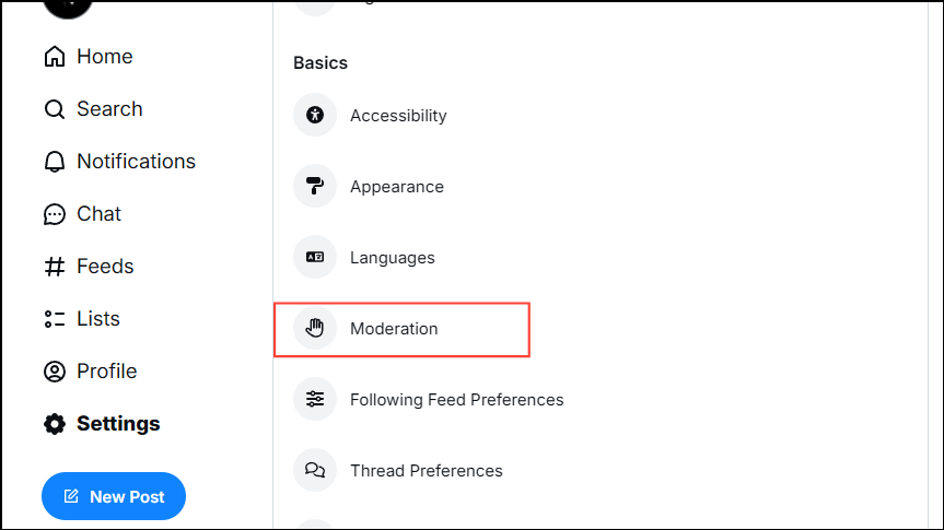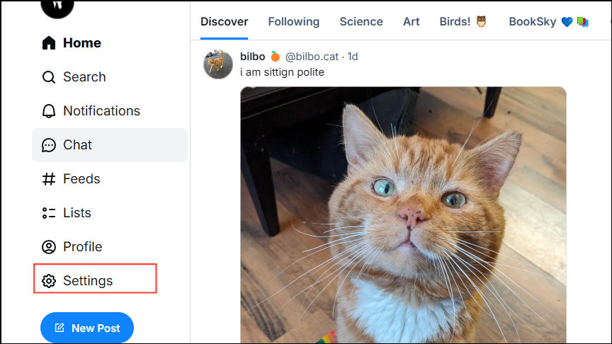 - To start moderating your Bluesky feed, log in to your Bluesky account and click on 'Settings' on the left.