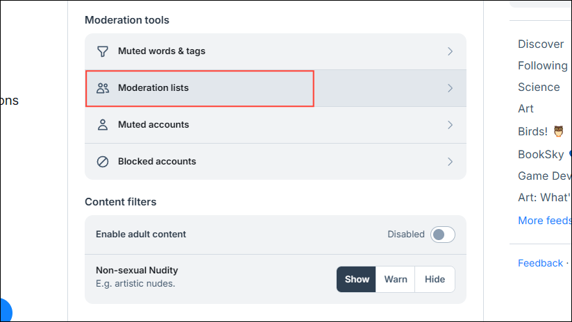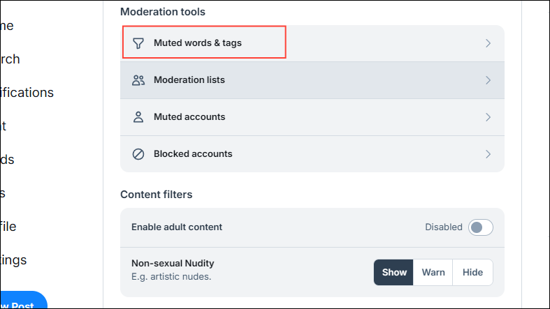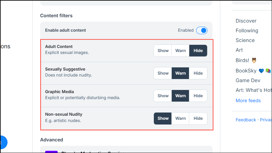 On Bluesky, you can adjust content filters to control adult content in your feeds.