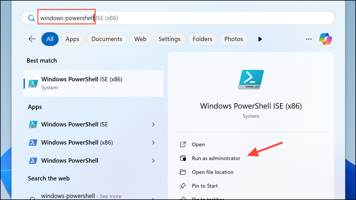 Step 1: First, open Windows PowerShell as an administrator. To do this, right-click the Start menu and select "Windows PowerShell (Admin)".