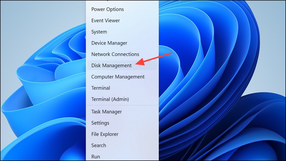 Step 1: Right-click the Start button and select "Disk Management" from the context menu.
