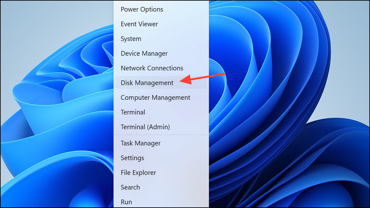 Step 2: If the drive doesn't appear automatically, press Windows Key + X and select "Disk Management" from the menu.