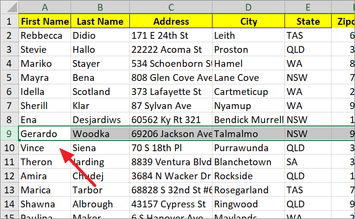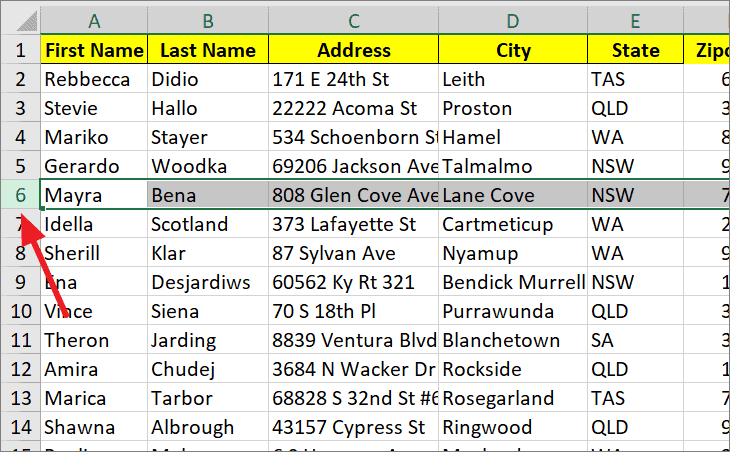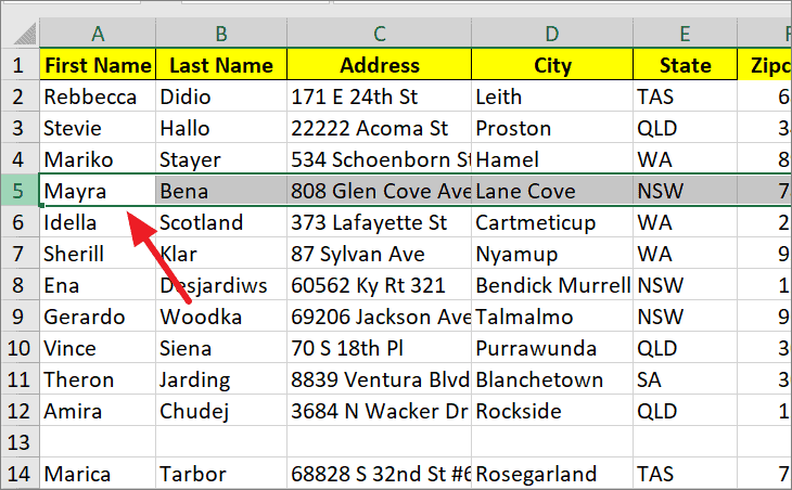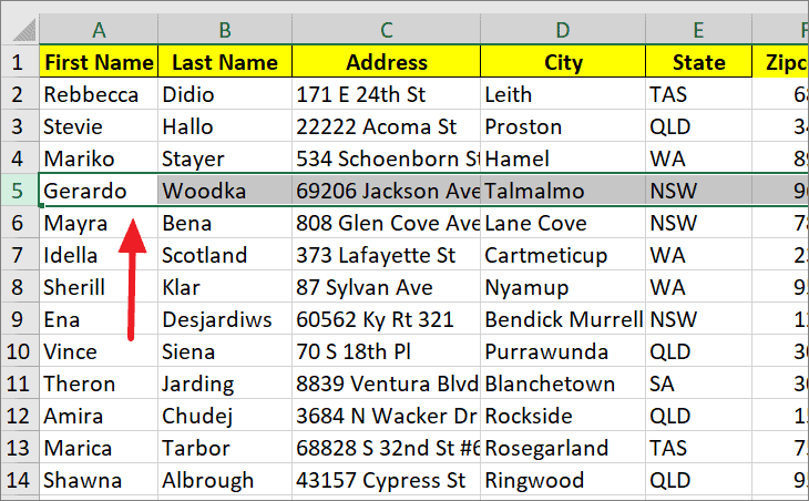 Step 1: Select the row you want to move. For example, select row 5 by clicking on its row number.