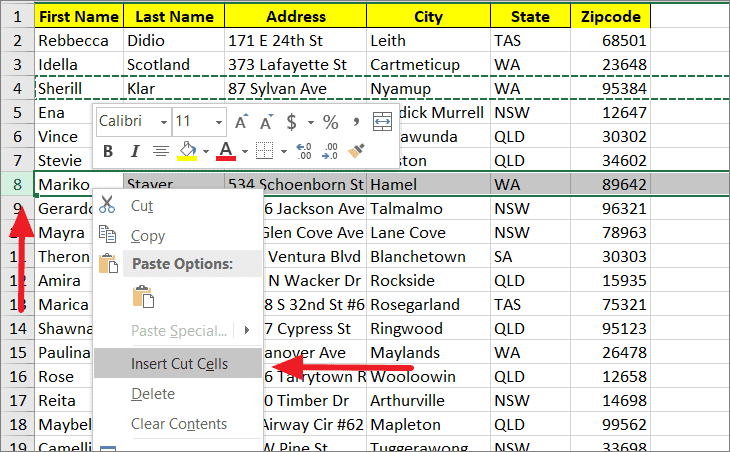 Step 4: Right-click the destination and choose Insert Cut Cells from the context menu.