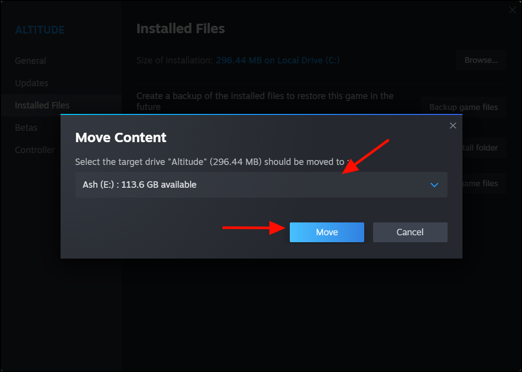 - Next, choose the drive where you want to move the game and click 'Move'.