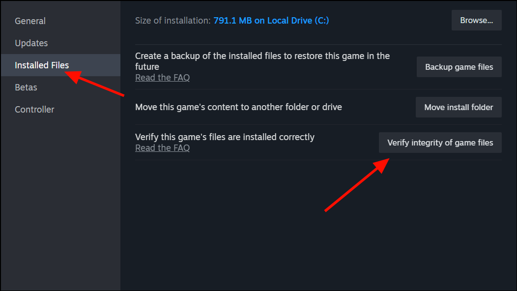 Then, move to the 'Installed Files' section and click the 'Verify integrity of game files' button.