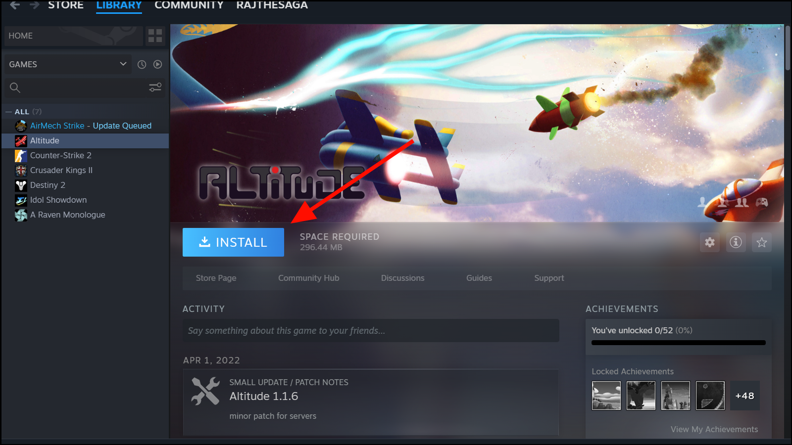 - After uninstalling the games, go to 'Library' and select your moved game. Then, click 'Install'.