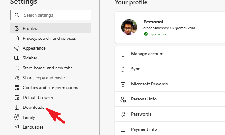 Step 2: In the left sidebar, click on 'Downloads'.