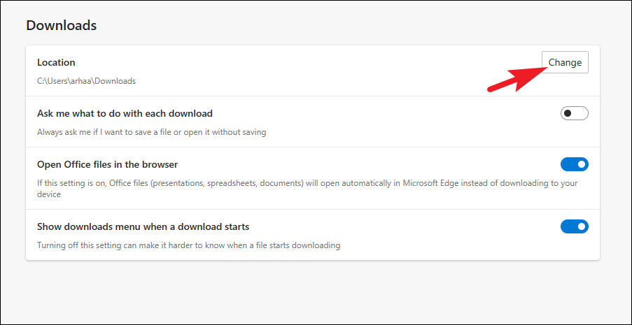 Step 3: On the right, click the 'Change' button next to the current download location. This will open a File Explorer window.