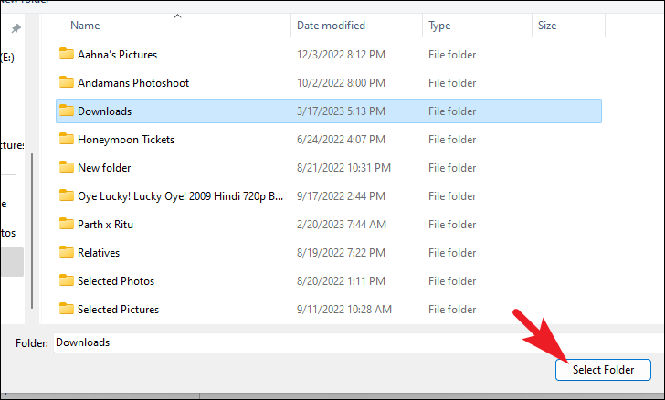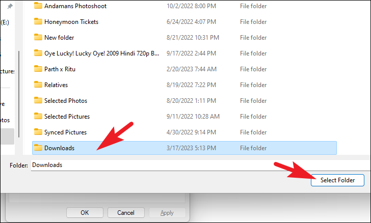 Step 5: Use the file selection window to navigate to the new 'Downloads' folder you created in Step 2. Select it and click 'Select Folder'.