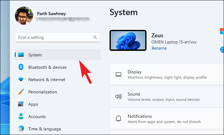 Step 2: In the Settings window, make sure 'System' is selected in the left sidebar.