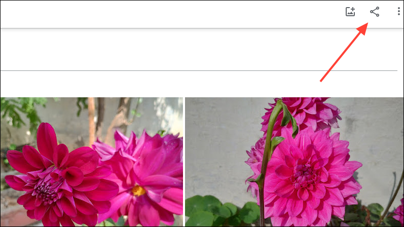 - Once the album is created, click the share icon on the upper right side to view the sharing options.