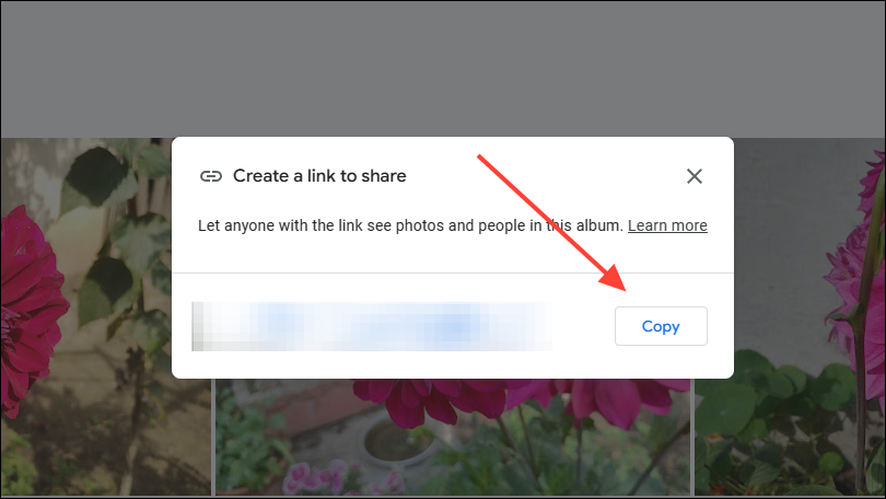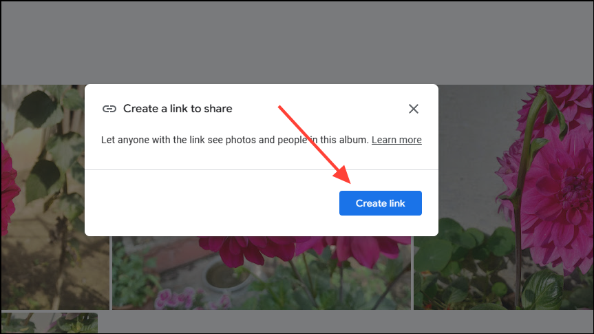 - Google Photos will notify you that people with whom the link will be shared will have access to the album. Click the 'Create Link' button to continue.