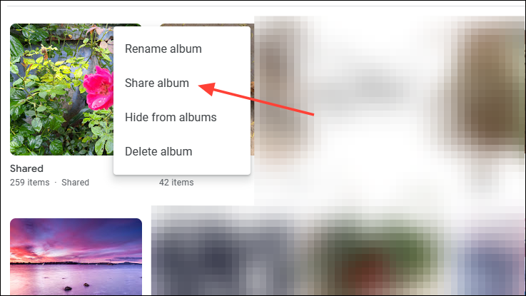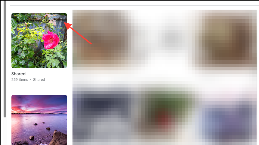 - Move your cursor over the album you want to share, and you will see three dots. Click them to view all album-related options.