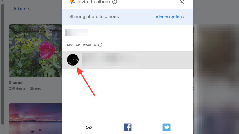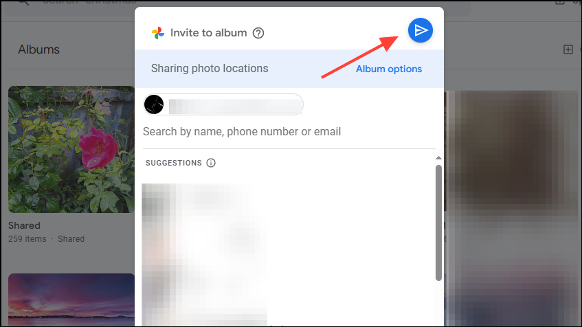 - Google Photos will suggest a few contacts with whom you can share the album.