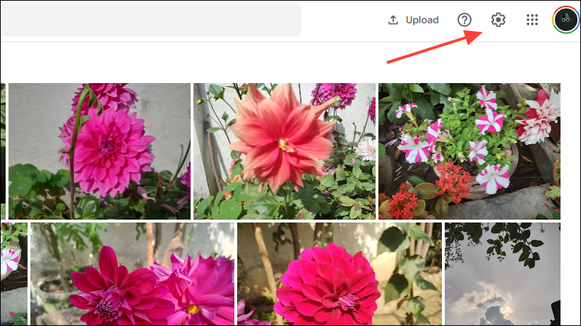 - To use Google Takeout, log in to Google Photos and tap the gear icon at the top right.