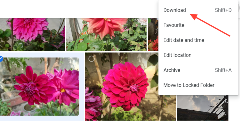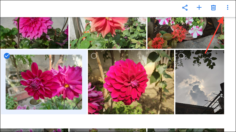 - Click the three dots in the upper right corner of the screen to start downloading the selected photos.