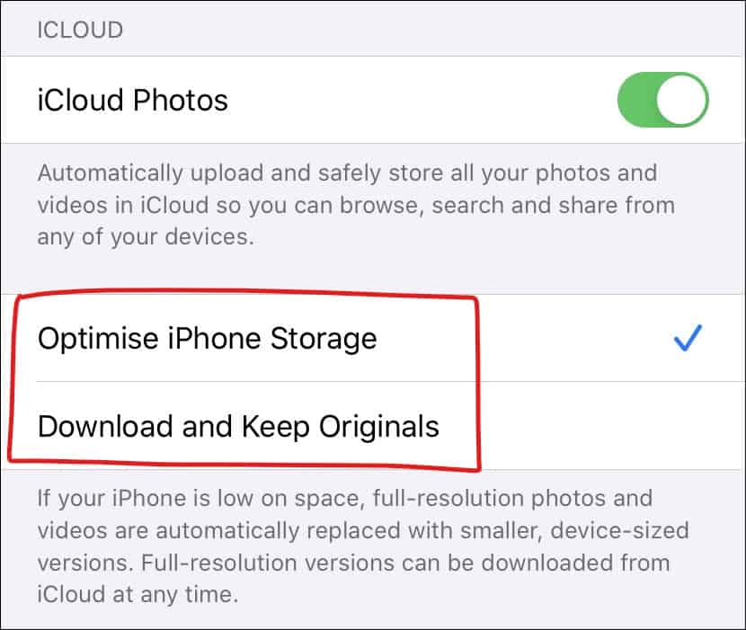 However, you can also select the Download and Keep Originals option to keep full resolution version of pictures saved on both your iPhone and iCloud.