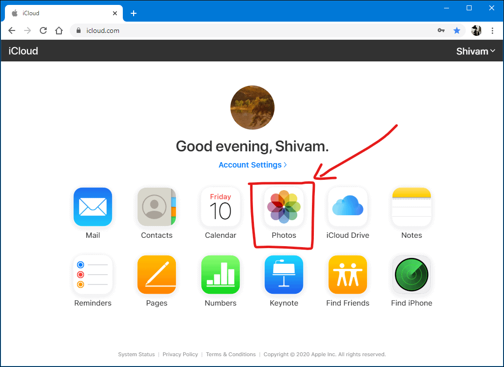 Once your iPhone photos are uploaded to iCloud, you can view them from any device by going to iCloud.com website and signing with your Apple ID and Password.