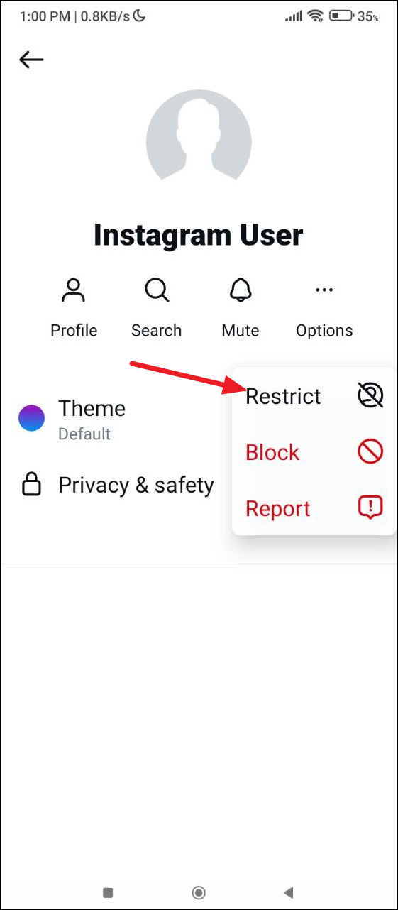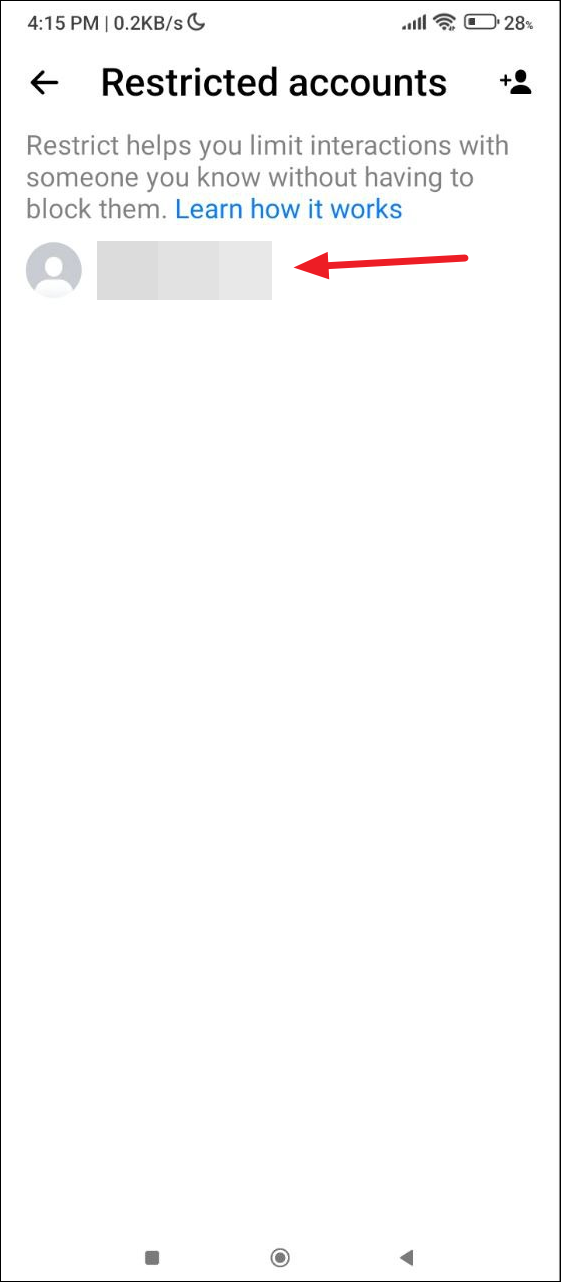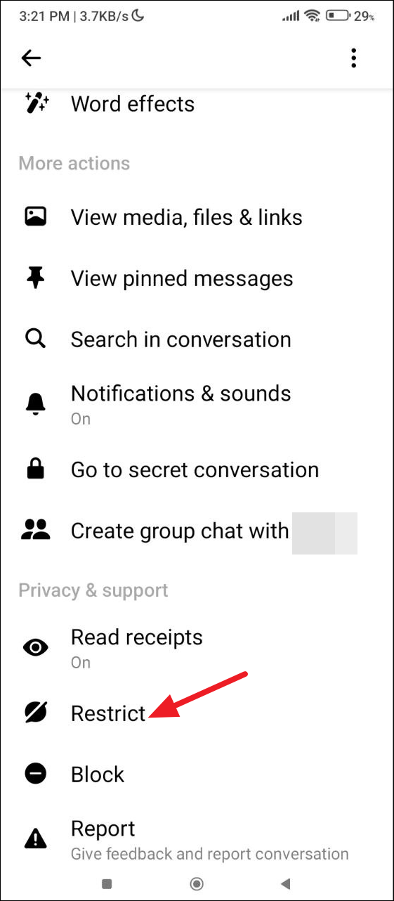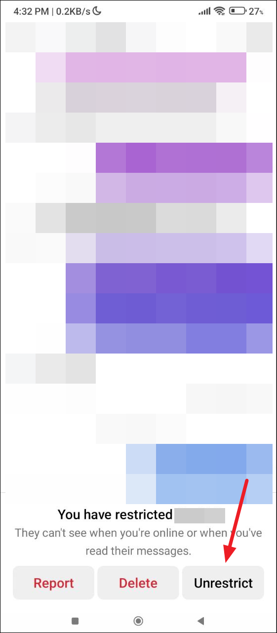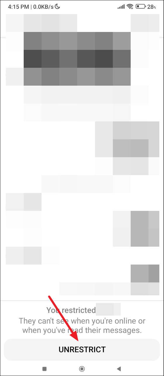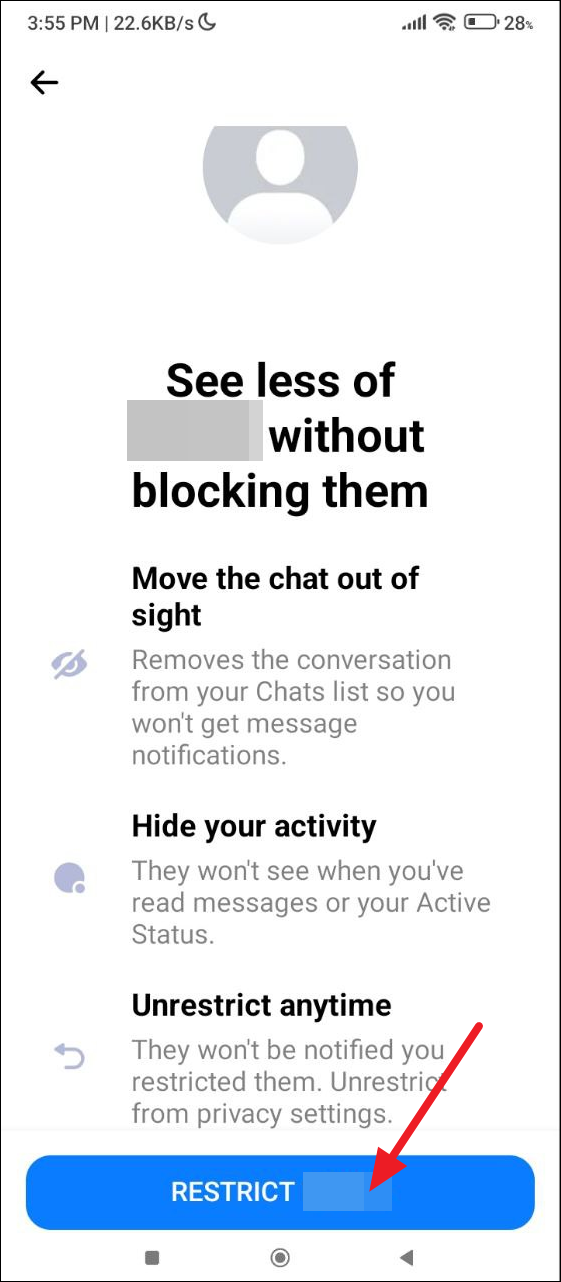 - Tap on the 'Restrict' button that appears at the bottom to confirm your decision.