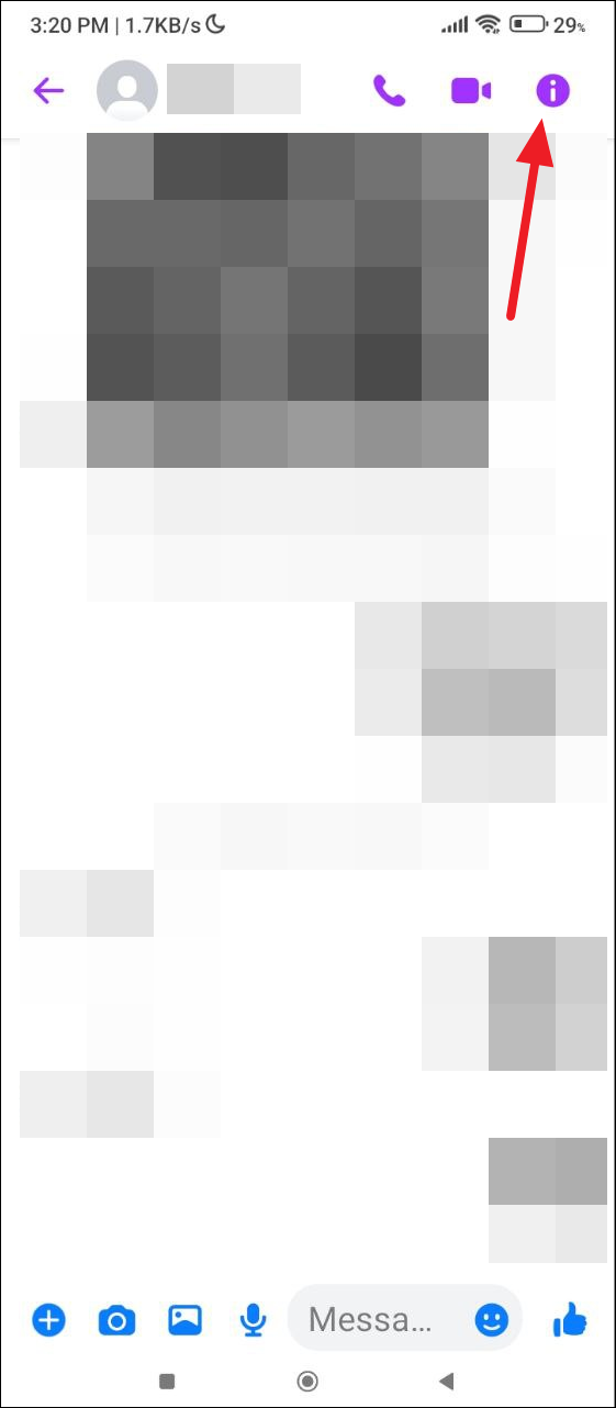 - In Facebook Messenger, open the chat and tap on the 'i' icon or the person's name at the top.