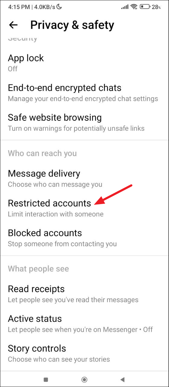 - The person you restrict will not have any knowledge of the fact and they will not be able to check your message read status and online status.