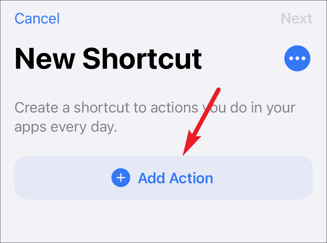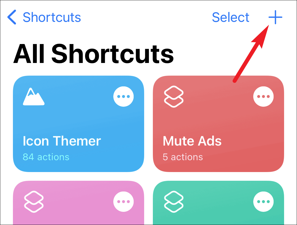 Open the Shortcuts app, and tap on the ‘New shortcut’ option (+ icon) on the upper right corner of the screen.