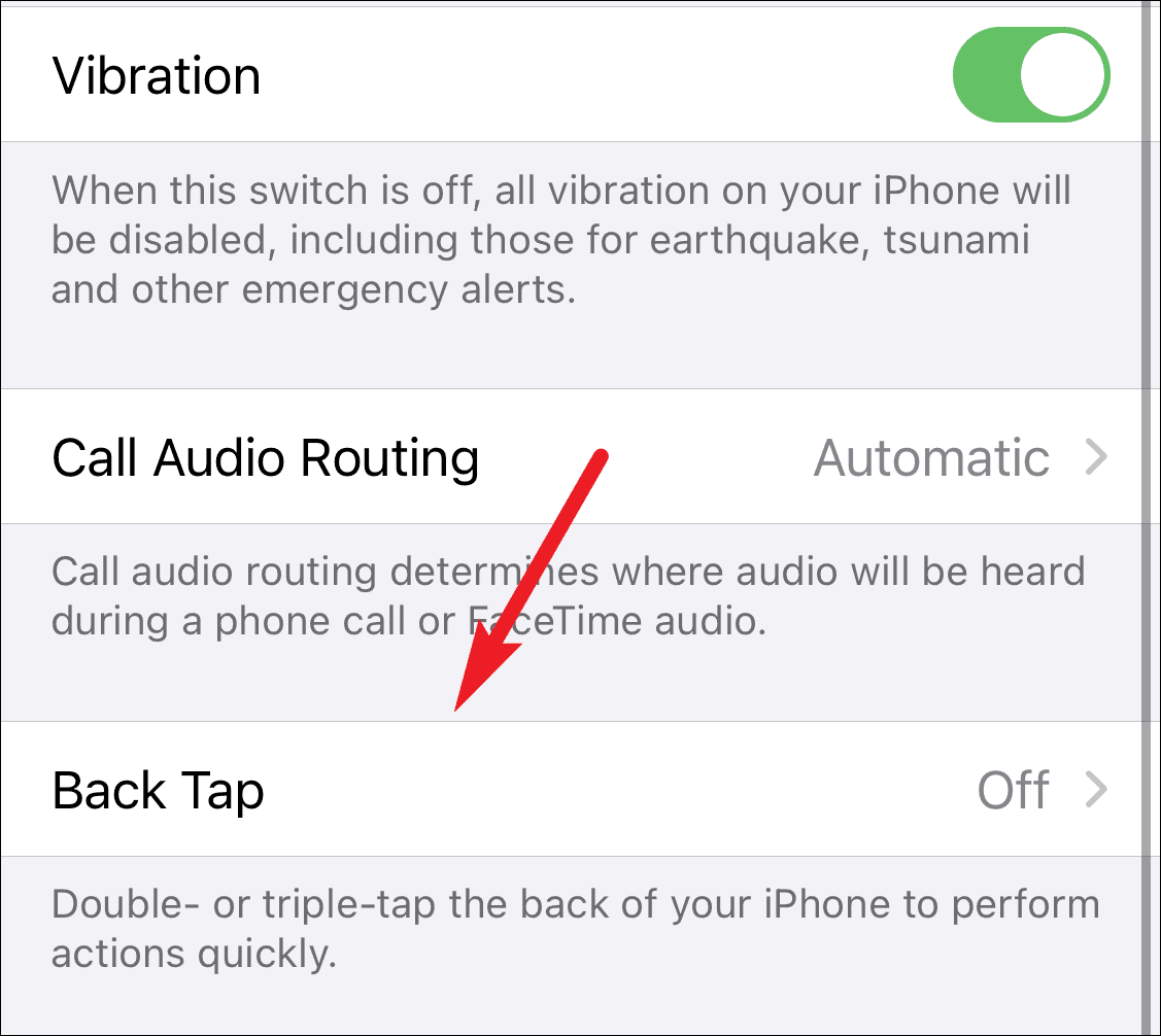 Then, scroll down to the very bottom and tap on ‘Back Tap’.