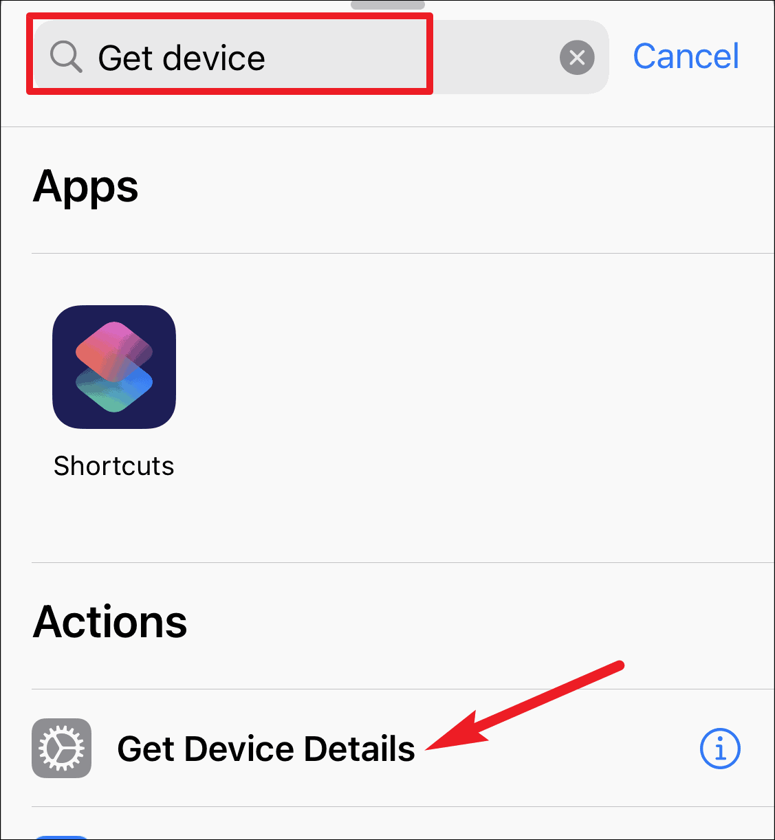 Now, search for ‘Get Device Details’ and tap on it under ‘Actions’. You can also go to ‘Scripting’ and then select ‘Get Device Details’ from under the ‘Device’ section.