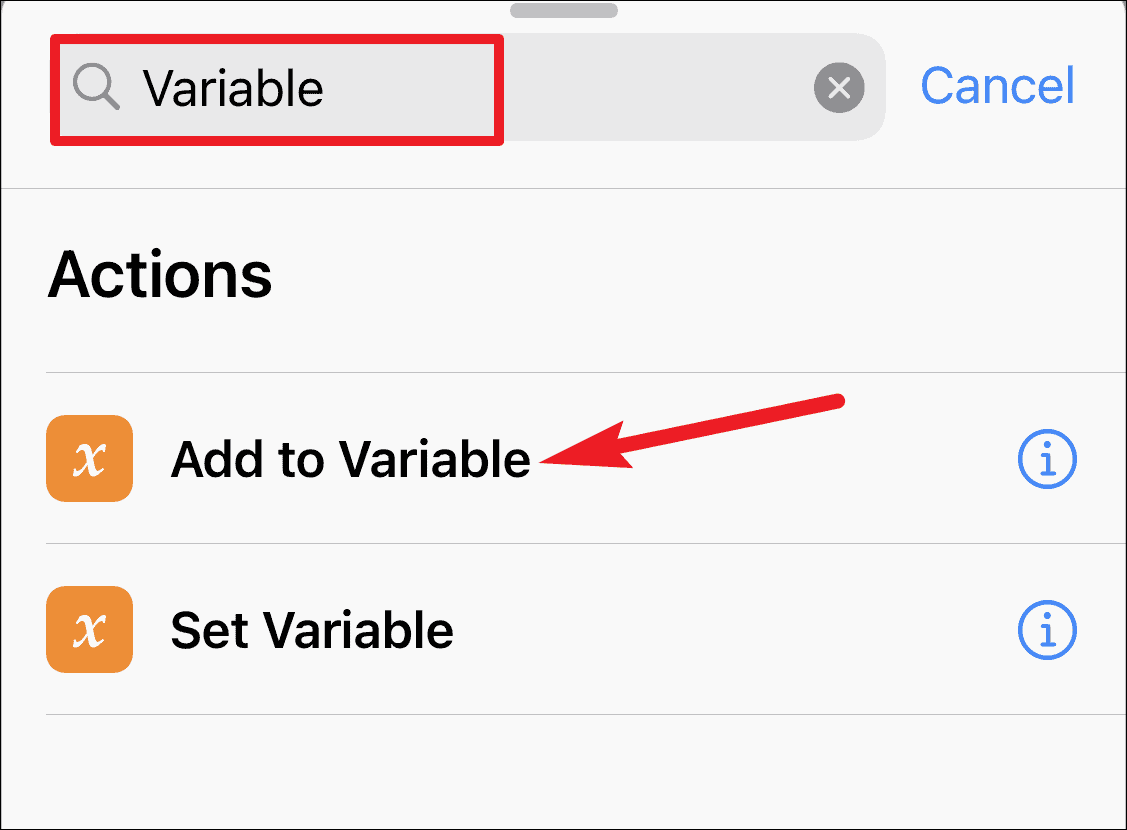 Search for ‘Variable’ and select the action ‘Add to Variable’.