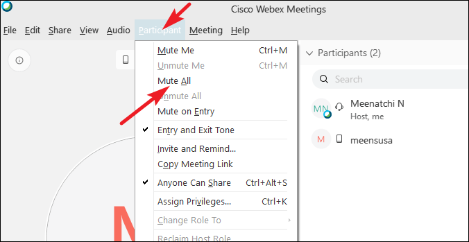 Mute all participants during a Webex meeting