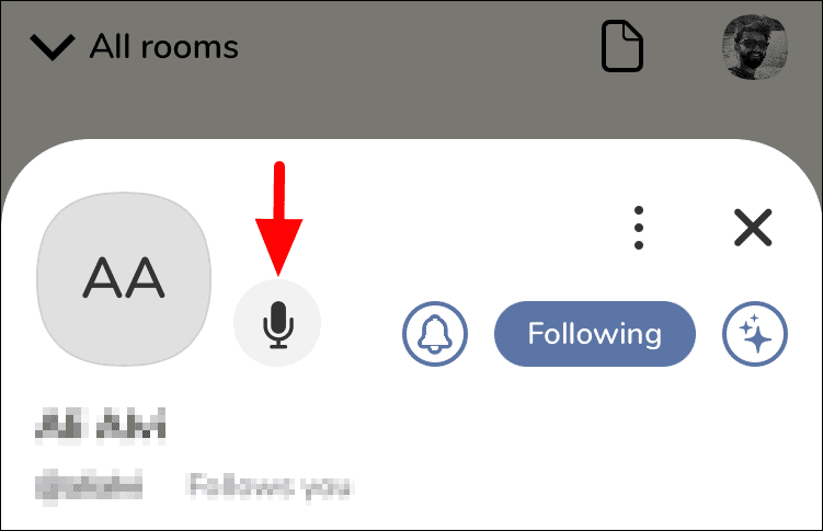 A shorter version of their profile will open on the screen. Now, tap on the ‘microphone’ icon right next to the profile photo or initials of the speaker.