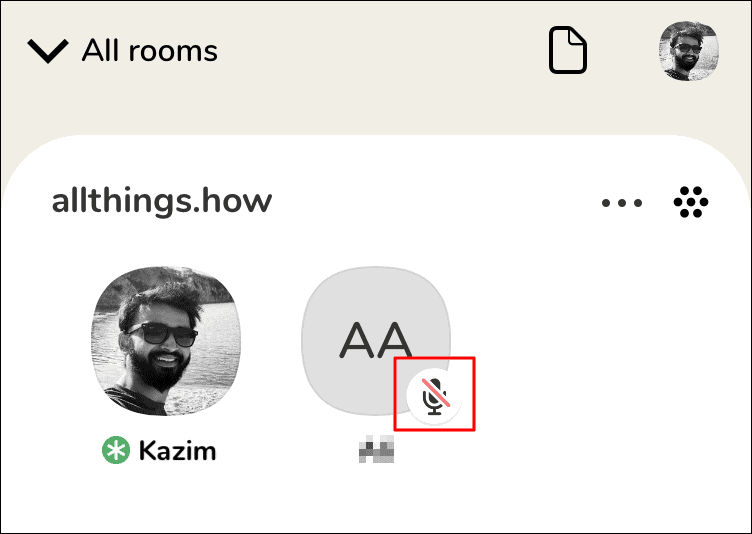 After you mute someone, a ‘muted microphone sign’ will be visible right next to their profile photo in the room.