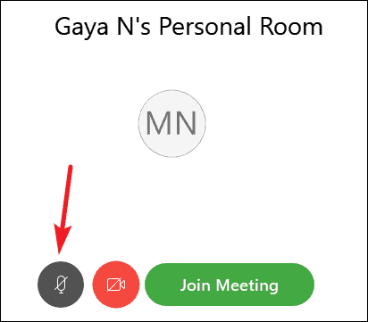 On the ‘Personal Room’ dialog that appears on your screen, click the ‘Microphone’ icon located at the bottom to turn off your mic and mute yourself.