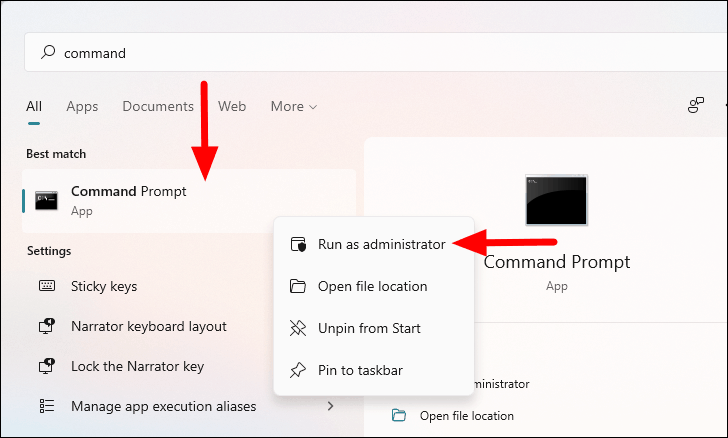 Windows + Sto open the Search menu. - Type Command Prompt.