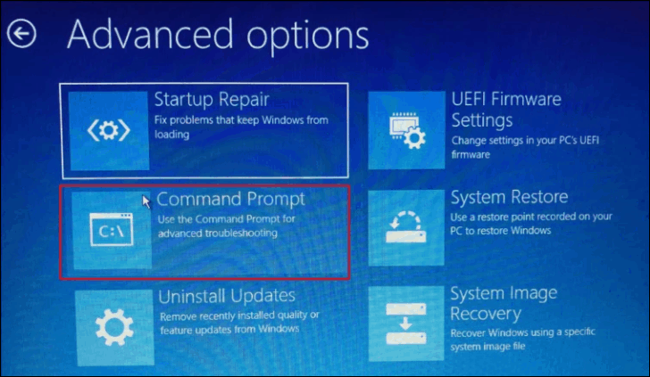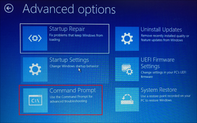 If your system isn't booting correctly, you can access Command Prompt through the Recovery Environment: